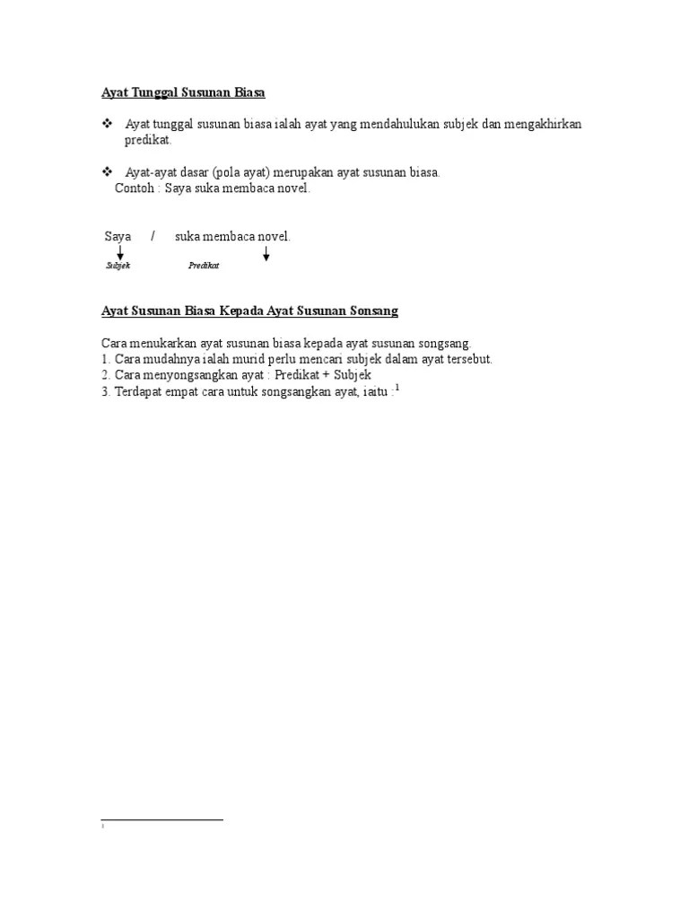 Contoh Ayat Tunggal Susunan Biasa : Ayat Songsang Pdf